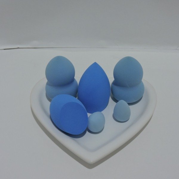 Frasco de acrilico con tapa de metal con 4 esponjas grandes y dos mini esponjas de maquillaje